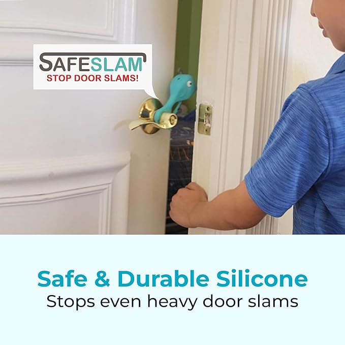 - π πππππππ ππππ ππππ πππππ πππ πππππ ππ πππππππ SAFESLAM is the βalways onβ door slam stopper. Other finger pinch guards must be removed to close the door so there is NO SAFETY when the door opens! But SAFESLAM is ready to protect every time the door opens! With SAFESLAM you simply turn the knob normally, so doors close quietly and safely, every time.