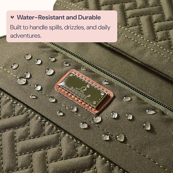 - Durability & Comfort - Our chic handy backpack diaper bags are made of tear-resistant water resistant fabric, strong zippers and lining. Reinforced cushioned shoulder straps and padded back panel will distribute the load evenly on your shoulders and back for long time wearing.