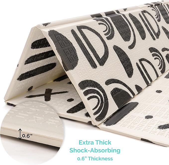 • Space To Play - This extra large baby play mat clocks in at 77 inches by 70 inches with a thick 0.6 in. padding, giving your little one plenty of space to crawl, play, or take a nap after they’re tuckered out