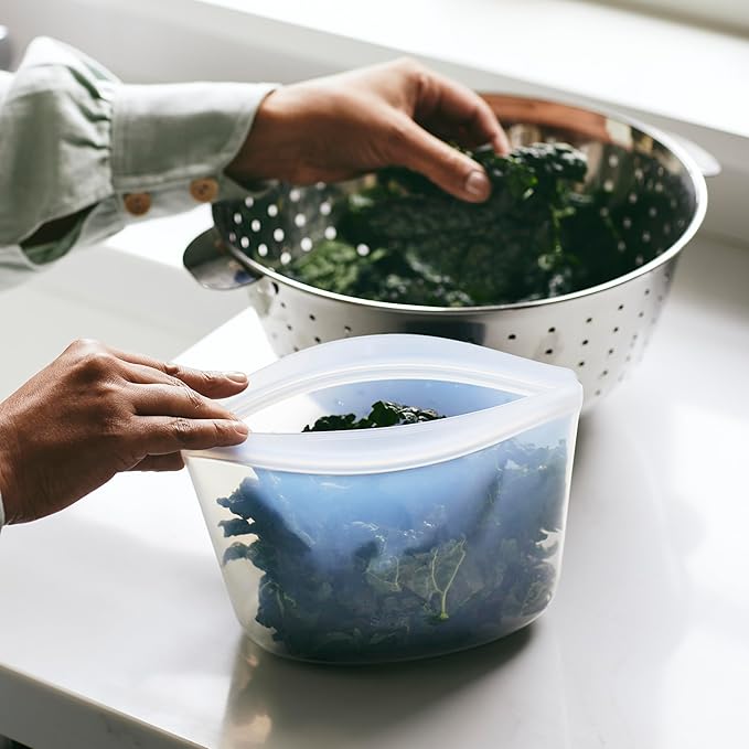 - BETTER SILICONE BAGS & BOWLS: Made with platinum food-grade silicone and a leak-free Pinch-Loc seal, these reusable food containers are free from lead, latex, phthalates, BPA, and BPS. Plus, one bag replaces 260 single-use plastic bags per year.