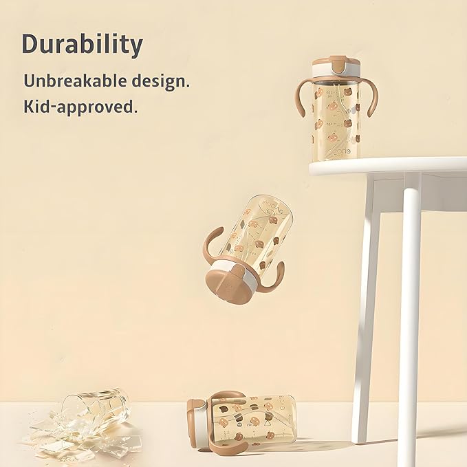- 【Easy to Use & Durable】Ergonomic handles allow toddlers to hold and drink easily, with a cross-cut straw to prevent choking and food debris from entering. Tritan straw sippy cups with scratch and impact resistant nature is perfect for an active growing toddler.