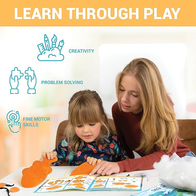 - 🎨 CONTAINS EVERYTHING YOU NEED: This sewing kit contains everything you need (yes, really everything) so you can get started straight away on these fun craft projects. This 165+ pcs set includes 8 pre-cut felt projects, 7 colors of embroidery thread, 10 pairs of craft eyes, plastic and metal sewing needles, 40 straight pins, needle threaders, scissors, stuffing, and easy to follow instructions.