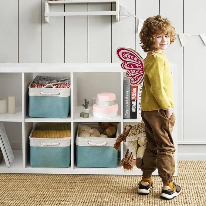 - High quality: The outer material of the storage box is made of imitation linen, with thickened EVA in the middle, refusing to sag, high quality can keep the storage box firm and stylish. The lining is thin cotton, easy to clean, just wipe with a wet sponge or cloth. The handle material is made of cotton and linen handle, wide and not strangled hands.