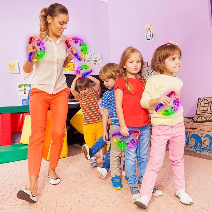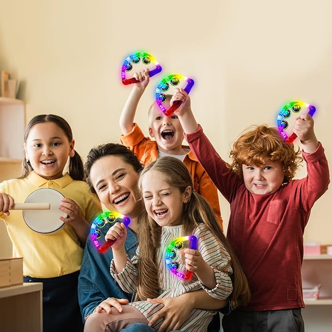 - WIDELY USED - Light-up tambourines are perfect for parties, Halloween, Christmas, concerts, weddings, birthdays, clubs, sporting events, nightlife, raves, festivals, bachelor parties, and any other nighttime event. They're definitely great party toys for adults and kids. If you use these noisy toys at glow-in-the-dark parties, you will be a shining presence in the crowd, making them perfect easter basket stuffers gifts and easter toys.