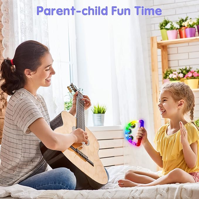 - 3 FLASHING MODES LIGHT UP MUSICAL TOYS - LED tambourine Built-in 3 lighting modes, including fast flashing, slow flashing, and alternately flashing, you can choose the flashing mode you want according to your preference or the current atmosphere. LED light up tambourine is absolutely indispensable toy to liven up the party atmosphere, and it will be a hit at your party.
