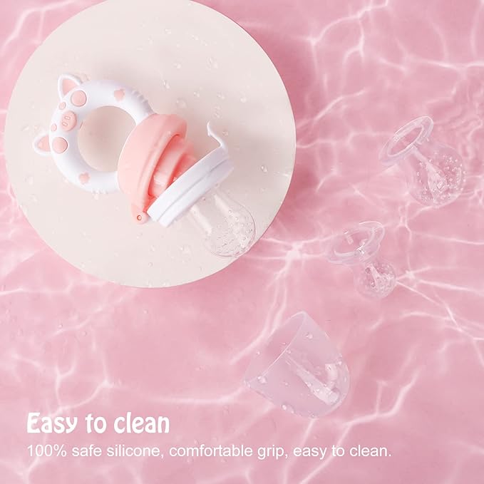 - 【SAFE SILICONE POUCH HOLES】HAOBAOBEI fruit feeder is made from 100% food grade silicone. BPA free. Lead, phthalates, latex free. 2mm silicone pouch hole, the juice is even and not easy to be blocked. When the baby bite the feeder pacifier, the food enters the baby's mouth in the form of fine and digestible drops, which will not choke the baby and avoid the risk of suffocation.