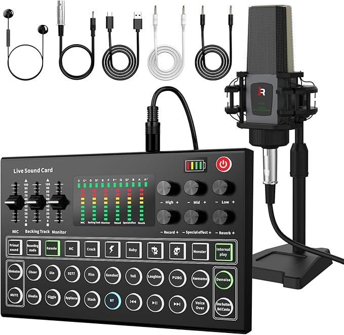 - 【Immersive special effects】: DJ live mixer, with a variety of functions for live broadcast, 10 kinds of special environmental effects such as applause and laughter. This sound card can create an atmosphere during the live broadcast and bring a better experience to the host