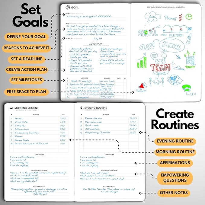 - STAY ALIGNED WITH YOUR GOALS – Use built-in goal-setting tools and review prompts to stay focused on long-term success—whether you’re managing business milestones, career growth, or personal development.