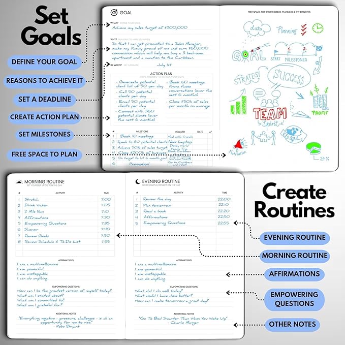 - STAY ALIGNED WITH YOUR GOALS – Use built-in goal-setting tools and review prompts to stay focused on long-term success—whether you’re managing business milestones, career growth, or personal development.
