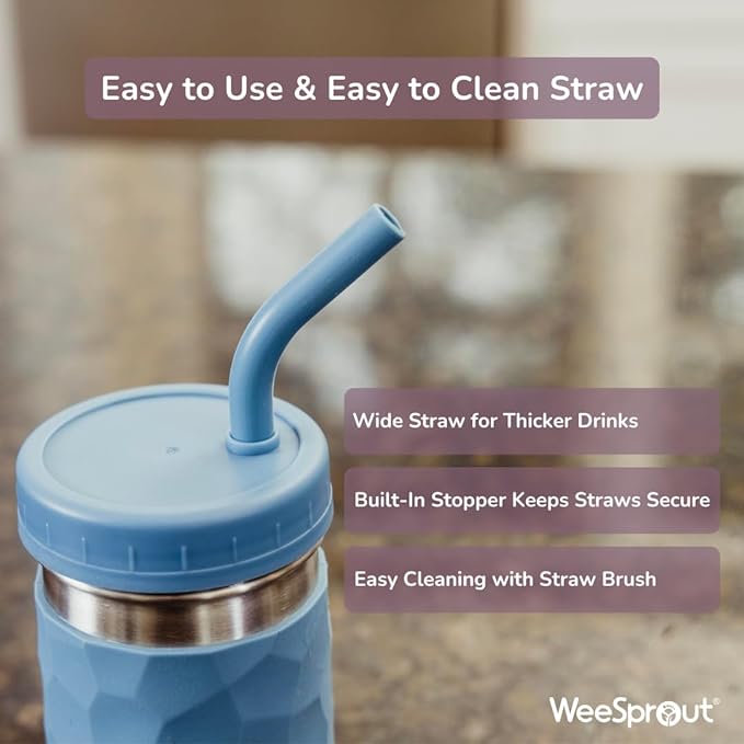 - ✅ STAINLESS STEEL KID CUPS WITH SILICONE STRAWS - Designed with speech pathologist recommendations in mind, WeeSprout cups feature soft silicone straws that are better for speech and oral development and are gentle on gums and developing teeth – and unlike straight straws, the curved design promotes proper jaw alignment by encouraging your child to drink from their cup without tilting their head down.