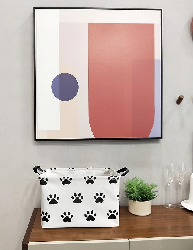 HIYAGON Dog toy Basket Dog Toy Bin Cute Toy Storage Basket Organizer Box Kids Gift Basket Empty Rectangular Room Decor for Home(Paw)
