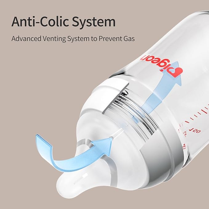 Pigeon Glass Nursing Bottle Wide Neck, Anti-Colic, Streamlined Body, Natural Feel, Easy to Clean, Heat-Resistant, 5.4 Oz(Pack of 2), Includes 2pcs SS Nipples (0m+)