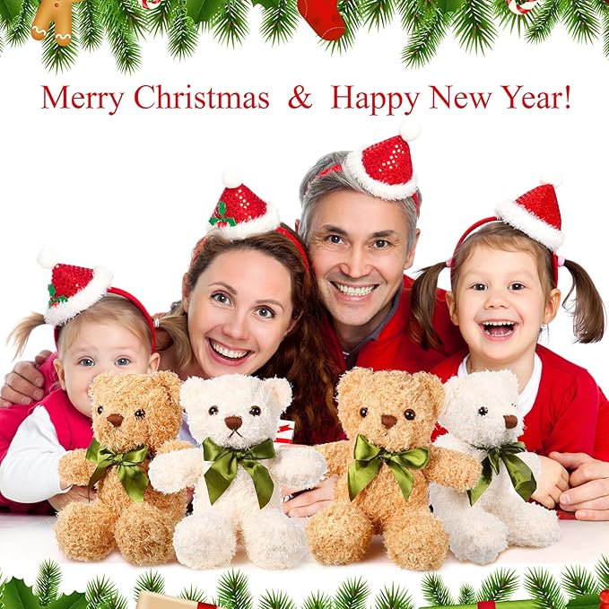 - Cute Bear Set: bears stuffed animals have a plush look with a cute green ribbon around their necks, which look nice and feel comfortable; They sit up nicely and are great for decorating your room