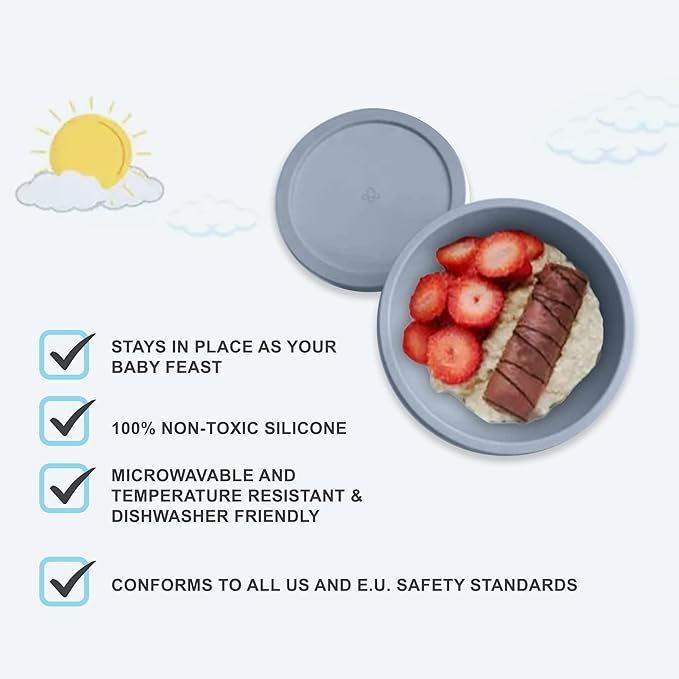- MESS-FREE BABY BOWL: Make mealtimes a fun learning experience for your toddler without the mess with our suction cup bowls for babies. Keep your baby's food where they're supposed to be without worrying about spilling. Our baby bowls are a great way to help your little one learn self-feeding skills. Our baby silicone bowl also features a lid to keep food fresh and free from contamination!