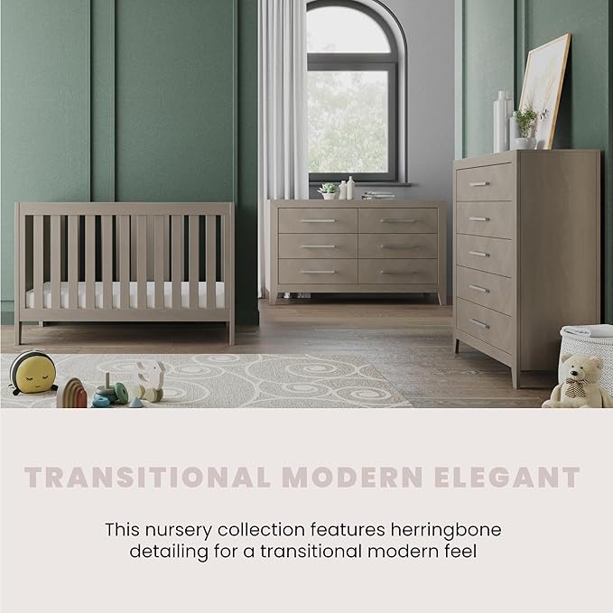 - Modern Transitional Euro Crib: The gentle herringbone design on the sideboards of the Kieran 3-in-1 Convertible Crib adds a modern sophisticated look to your baby’s nursery