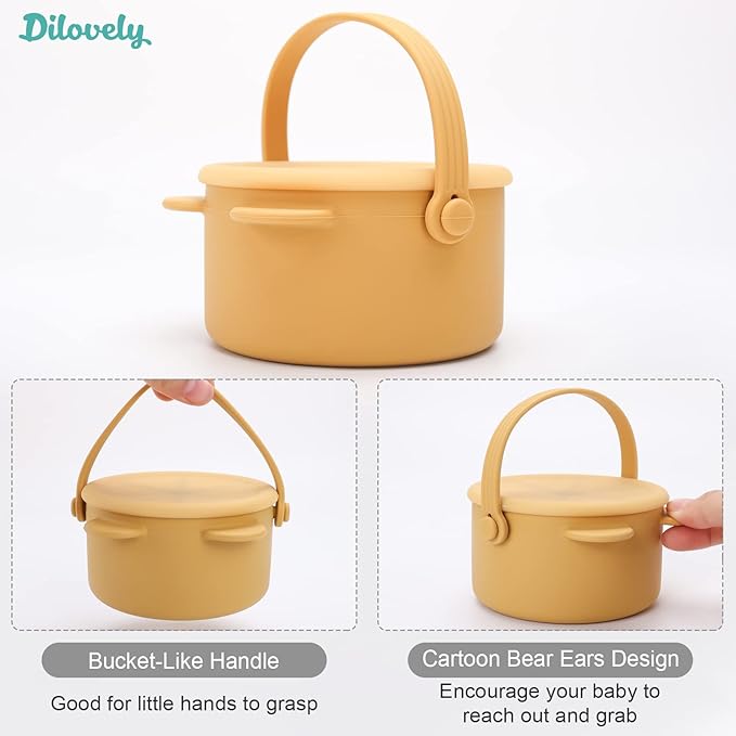 - SAFE FOR BABY: The Dilovely snack cups for baby is made out of food grade silicone, free from BPA, BPS, PVC, lead & phthalates. This kids snack container thoroughly tested by a third-party lab. Safe baby essential for self-feeding.