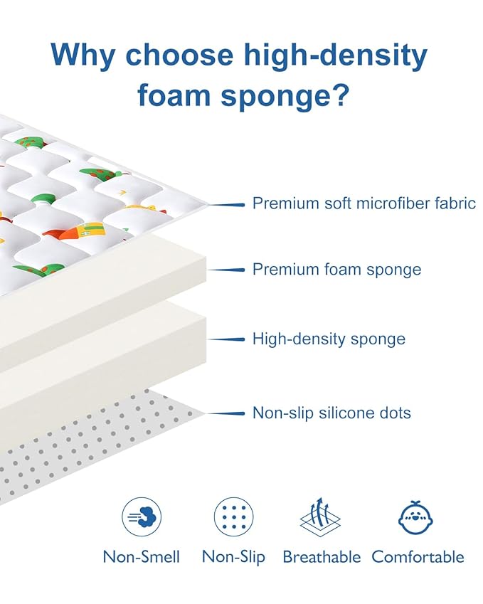 - Focus on Details: Backed by 25 years of manufacturing expertise: Our mat for babies features reinforced precision stitching and 5X longer lifespan than average nursery mats. Built to withstand daily adventures!