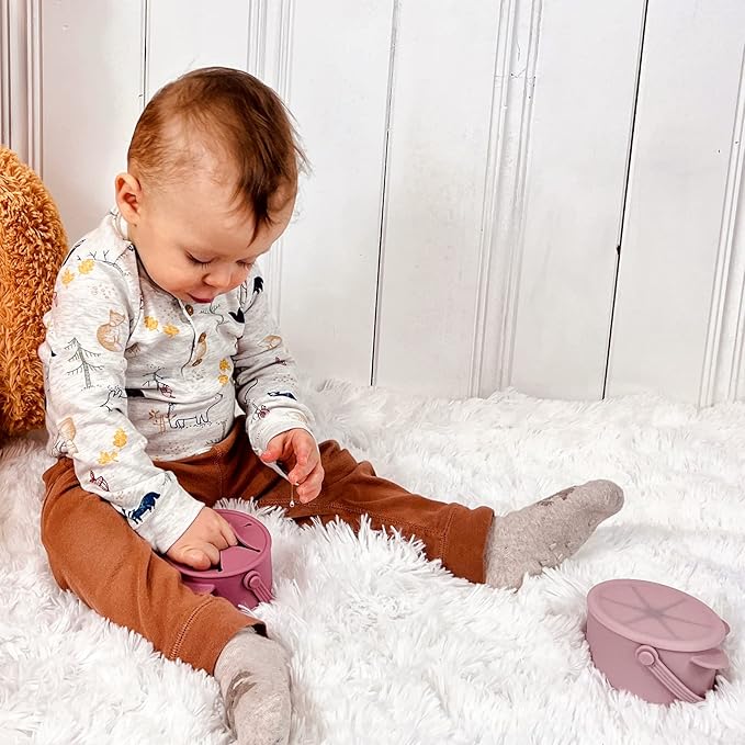 - DESIGNED FOR BABIES: Our no spill snack cups for toddlers features soft flaps that allow tiny hand to reach in while preventing inconvenient spills. The smooth edges and soft silicone of this snack holder double as a baby teether as well.