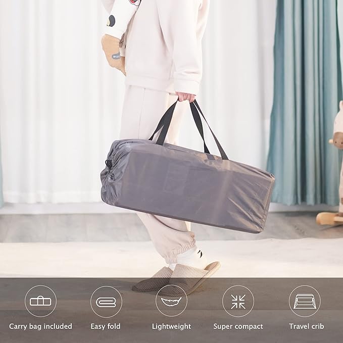 - 【Safety and Lightweight】- The stable trapezoidal design, the four corners of the bottom are evenly stressed to prevent the playard from tilting and enhance stability, so that your baby can play safely. The portable travel crib lightweight structure is easy to assemble. Take it with you in the car, on the train, or on the plane whenever you want to travel.