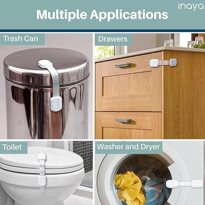 - Cabinet Locks Baby Proofing with Improved Design: Transform your home into a safe and fun sanctuary for your kids with baby cabinet safety latches from Inaya. The child proof cabinet locks with a longer adjustable length are perfect to childproof your cabinets, drawers, refrigerators, toilet lids, washer machines, closets, microwave, freezer and more within minutes