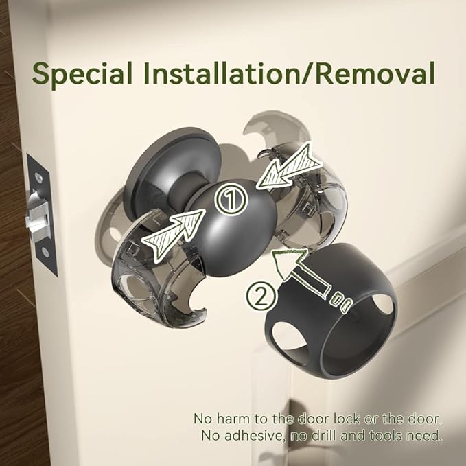- Special Installation/Removal---Special installation design makes adults easy to install or remove with only hands,no harm to the door lock or the door.No Adhesive, no drill and tools need.