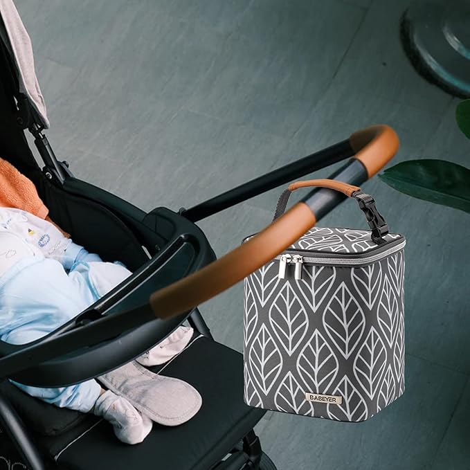 - High Quality:BABEYER Baby bottle bag is made of high Polyester dirt-proof fabric, and durable smooth mental zipper. The lining of the cooler bottle bag are waterproof and wipeable. The side pocket can put some useful items, like phones, keys and so on