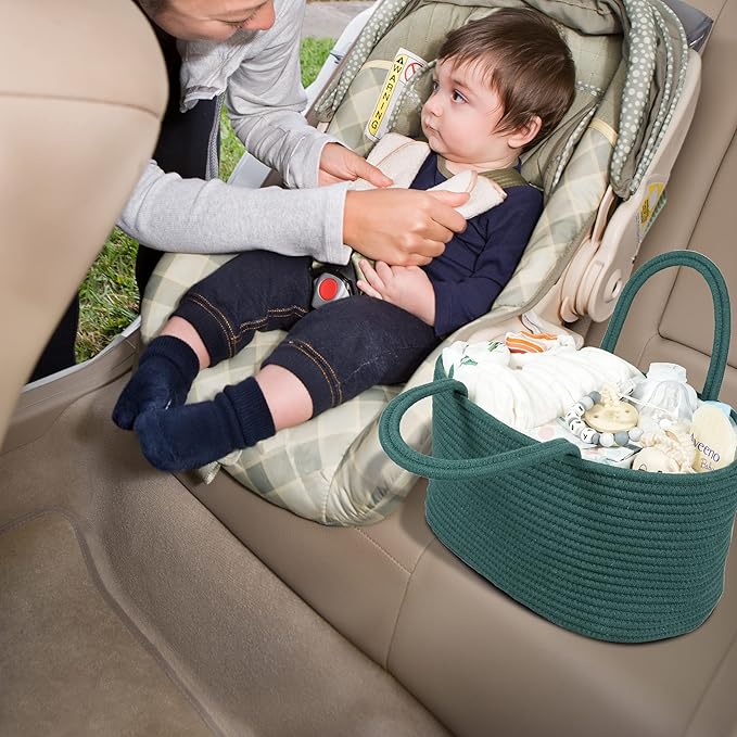 Large Baby Diaper Caddy Organizer for Girl Boy Rope Nursery Storage Bin Basket Portable Holder Tote Bag for Changing Table Car Travel Baby Shower Gifts basket dark green