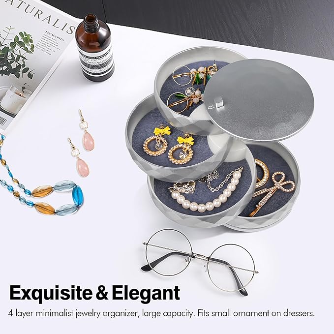 - ♥【Rotating Jewelry Organizer】- Simple and modern style, rotate into any look you like, excellent dressing table decor; it's a compact cylinder when closed, and isolate dust to better maintain the luster of jewelry.