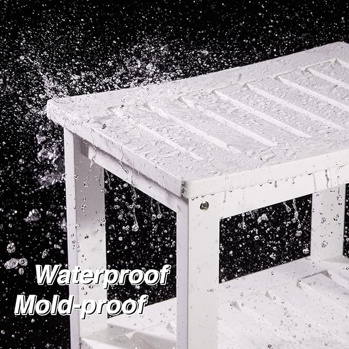 Psilvam Poly Lumber Shower Bench, Shower Stool with Storage Shelf, Shower Benches for Inside Shower Water Resistant & Non-Slip Design Shower Chair Seat for Bathroom, Living Room (White)