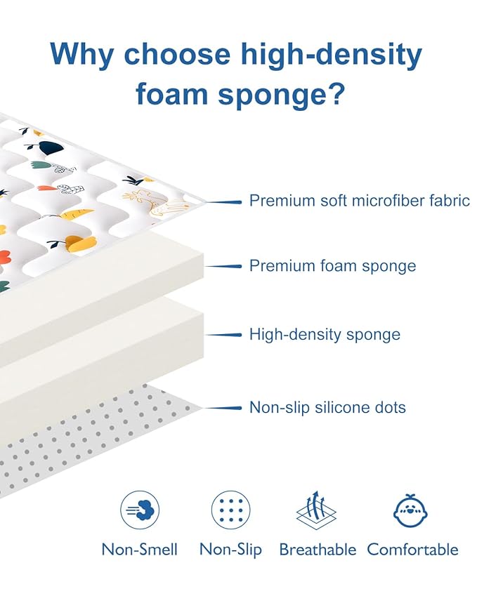 - Focus on Details: Backed by 25 years of manufacturing expertise: Our mat for babies features reinforced precision stitching and 10X longer lifespan than average nursery mats. Built to withstand daily adventures!