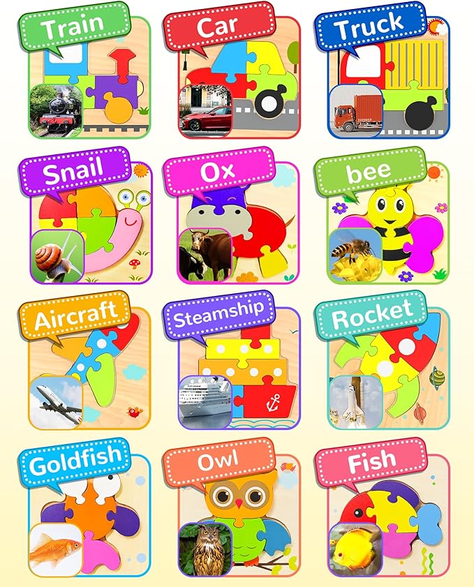 - SAFETY AND HIGH QUALITY:Our toddler puzzles for young kids include high-quality, chunky wooden pieces to ensure tiny hands can easily grasp the pieces and complete the puzzle. The edges of wooden puzzles are smooth , it keeps your 1 2 3 years old plus boys and girls play safely. Your children will love the large, thick pieces of this toddler toy, which are easy to handle and put together.