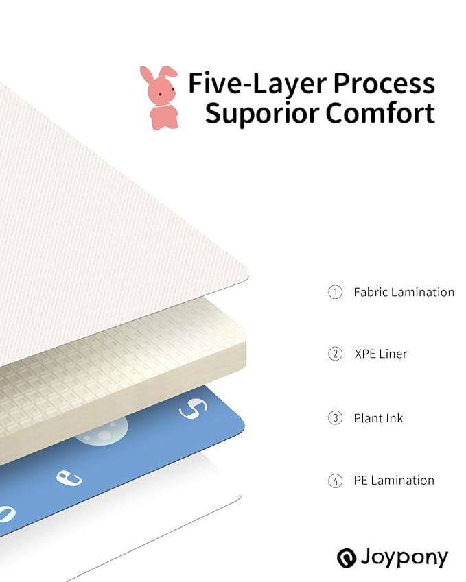 - [SAFETY & COMFORT- OUR FOREMOST PROMISE] - Made from high-density, anti-scratch XPE foam material, our baby play mat is BPA-free, non-toxic, and odorless, ensuring a soft and safe play surface for infants and toddlers. Its cushioned design is perfect for protecting little ones from hard floors and providing extra support during tummy time. Joypony play mat is truly reliable, safe and odourless, and is ready to use right out of the box.