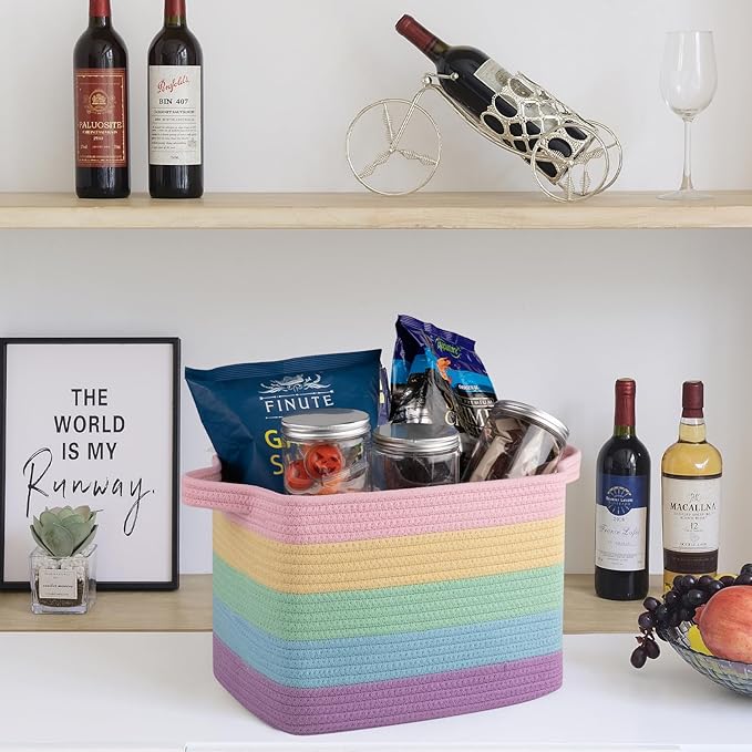 OIAHOMY Storage Basket, Woven Baskets for Storage, Cotton Rope Basket for toys,Towel Baskets for Bathroom - Pack of 3, Rainbow Pastel