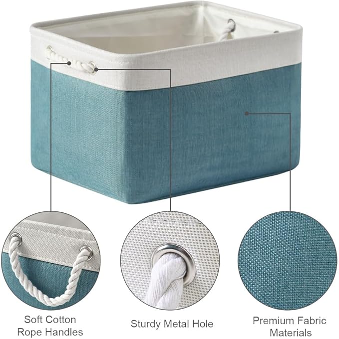 TheWarmHome Organization and Storage basket for Organizing - 3 Pack 16x12x12 inch Cube Storage Bin for Shelves, Fabric Storage Cubes for Organizer Cloth Closet Toy Box (White & Green)