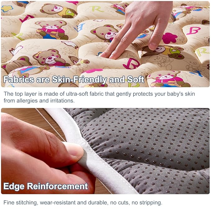 - 【Non-slip, thick and comfort】 The back side of the 59x59 play mat for made of anti-slip material, and the bottom backing is silicone dots. It is thicker than other play mat. It prevents babies from causing pain when they fall or bump.