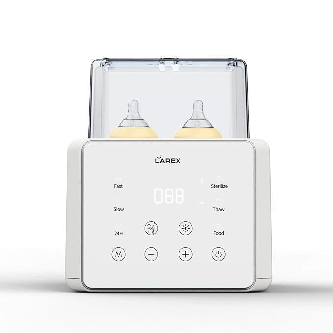 LAREX Double Bottle Warmer, 11-in-1 Fast Baby Bottle Warmer for Breastmilk and Formula, with Timer, Fits 2 Bottles, Accurate Temp Control, Milk Warmer with Thaw, Steri-lizing, Keep Warm, Heat Food