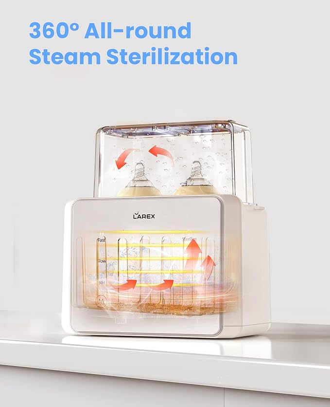 - Auto Shut off: LAREX Baby Bottle Warmer uses gentle water bath heating to evenly warm breast milk, effectively preserving its nutritional value. Equipped with precise temp control and auto shut-off, it always stays the ideal temp for your baby feeding