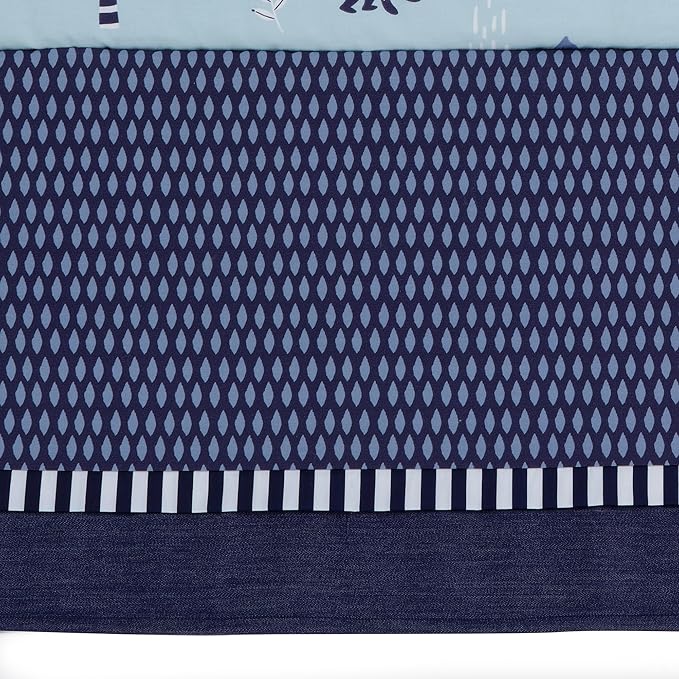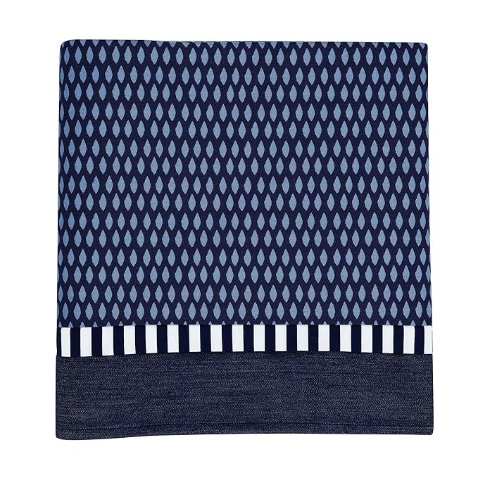 - Coordinating crib skirt in a pretty navy print with a vertical stripe