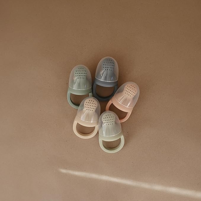 - Sofe & Soft Silicone: Made from food grade silicone and featuring an easy-to-clean, two-piece design, this feeder will quickly become a favorite for at-home meals or on-the-go snacks. Its handle is easily held by little fingers as the small holes release the right amount of fresh or frozen favorites from its soft but sturdy design. All mushie Fresh Food Feeders are Prop 65 and CPSIA Complaint.