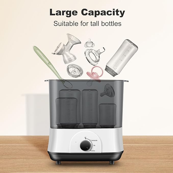 Baby Bottle Steamer, 3-in-1 Bottle Steamer and Dryer, Easy One-Dial Control Electric Steam Bottle Dryer for Baby Bottles, Baby Stuffs & Breast Pump Accessories