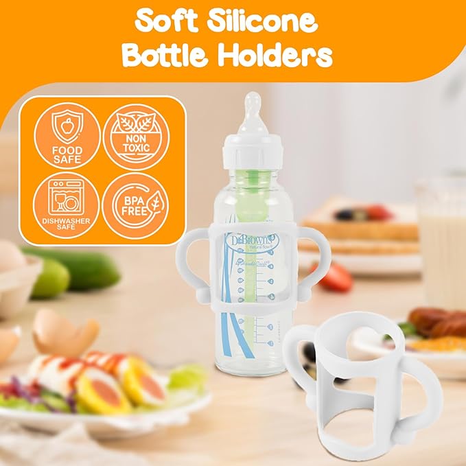 - Silicone Baby Bottle Handles – Designed to fit for Dr Brown narrow baby bottles and wide-neck bottles and most baby bottles and sippy cups with a 2 1/4-inch diameter, these silicone bottle handles provide a secure grip. PLEASE NOTE: This is an aftermarket part produced by TonGass meeting OEM quality (based on in-house testing). We have no affiliation with or endorsement from any of the manufacturers mentioned.
