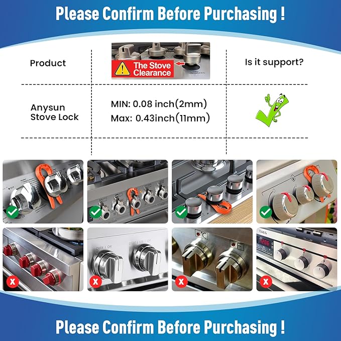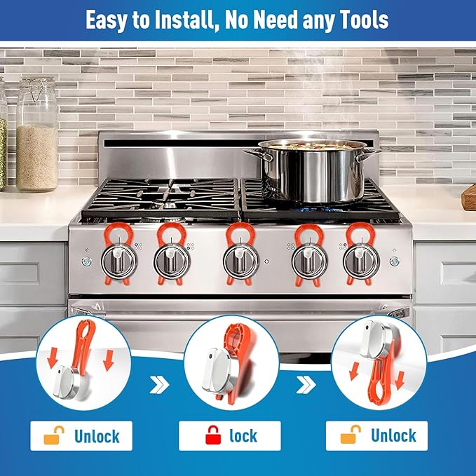 - Keep your kids safe: Use the Anysun stove knob cover lock. In this way, the baby does not open the gas stove switch to avoid accidents. Our functional design stove knobs effectively prevent babies from opening gas stoves to protect children from burns, scalds, gas leaks, and other accidents.