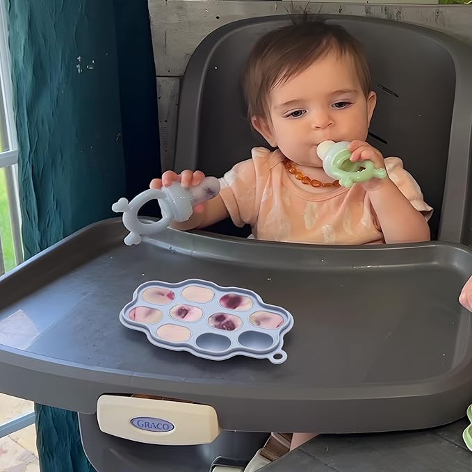 - SILICONE BABY FREEZER TRAYS - Each baby food freezer tray has 10 perfectly sized holes. With this Kingkam Baby Food freezer tray you can get multiple perfect sized frozen portions for most food feeder, and you can put breastmilk, purees, juices or some baby food to freeze, then put the frozen pieces into feeder, easy to get a frozen milk popsicle for babies with sore gums