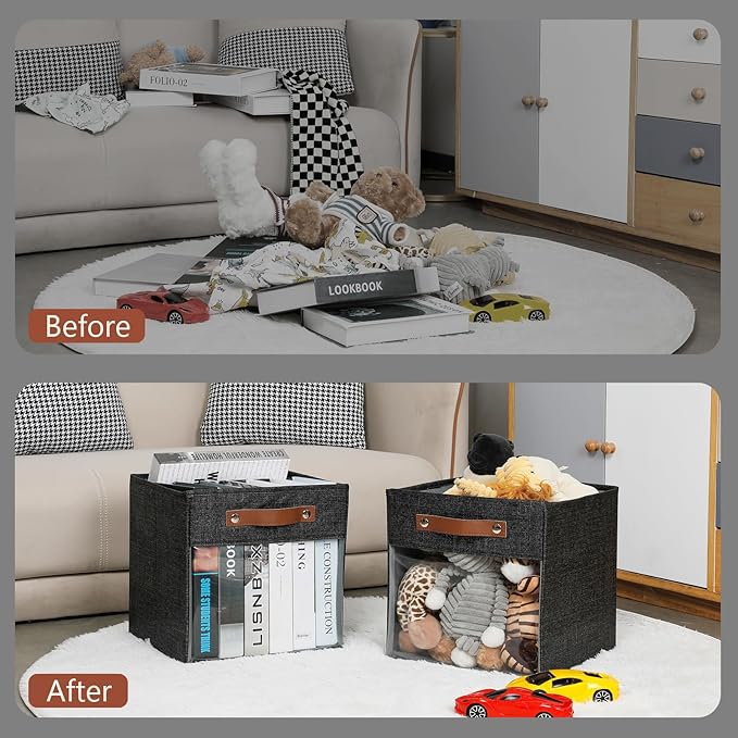- 【Clear Cube Storage Bins】We have made an upgrade to the cube organizer bins for cube organizer by incorporating a clear window design. This feature enables you to easily and precisely view the cubby closet organizer bins stored inside. There will be no need to dig through the contents anymore.This will improve the efficiency of your search, which in turn will help you save valuable time and effort.