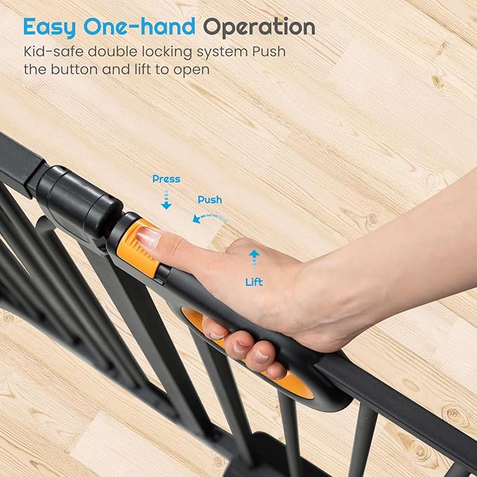 - 【Safe Baby Gate】Our extra wide baby gate can effectively restrict your baby or pets from entering specific areas, ensuring their safety, which provides you and your family with safety and reassurance.