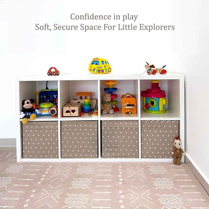 MOON WALKERS Stylish Boho Baby Play Mats for Floor, (6x6ft) Play Mat for Babies and Toddlers, Non-Toxic, Soft, Thick, Tummy Time Mat for Crawling (Extra Large 9 Tiles, Beige Aztec)