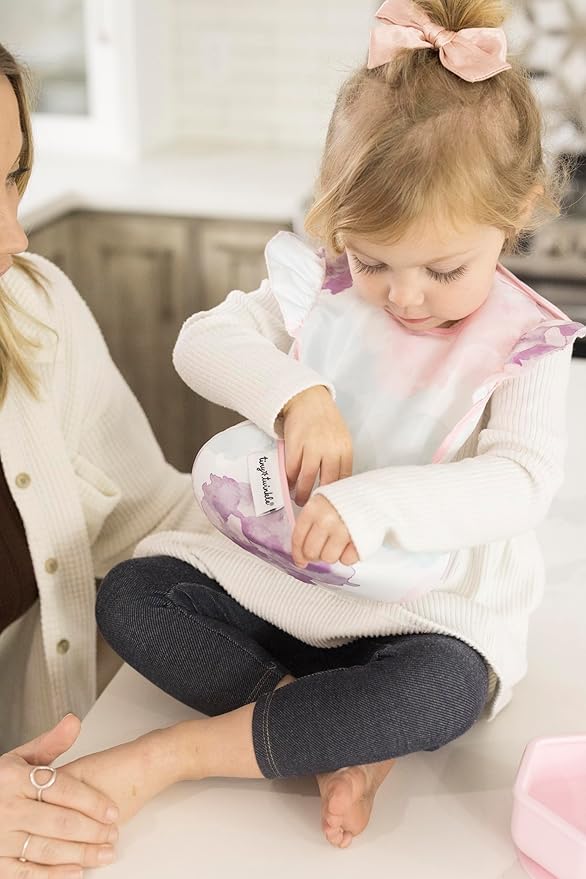 - TRAVEL MUST HAVES: Our baby feeding bib is the ultimate travel companion.Soft,lightweight and waterproof,this infant bib features a no-scratch closure that's gentle on your child.It protects clothes,floors and tables from messes.Bring your baby anywhere with confidence,knowing you've got the right toddler bib and baby smock bib for the job.