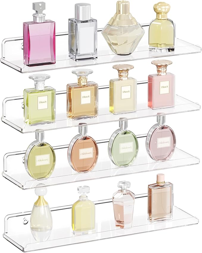 Lifewit Floating Shelves for Wall, 4 Pack 15" Clear Acrylic Shelf Room Decor for Book/Figures/Photo/Makeup in Bathroom, Book Shelf, Living Room, Bedroom, Kitchen Storage and Organization