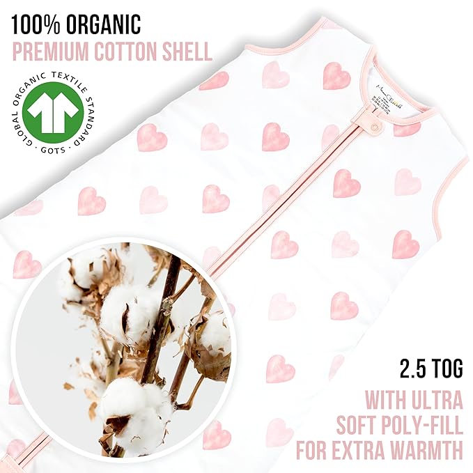 - Made with organic cotton – The Mama Cheetah 2.5 TOG Baby Sleeping Bag is made of premium 100% organic cotton shell, with ultra soft polyester fill for extra warmth, which is perfect for cooler months. The organic cotton interlock minimizes the risk of overheating and keeps your baby warm and comfortable. Please be mindful of the TOG rating when ordering the right sleeping bag for your baby.