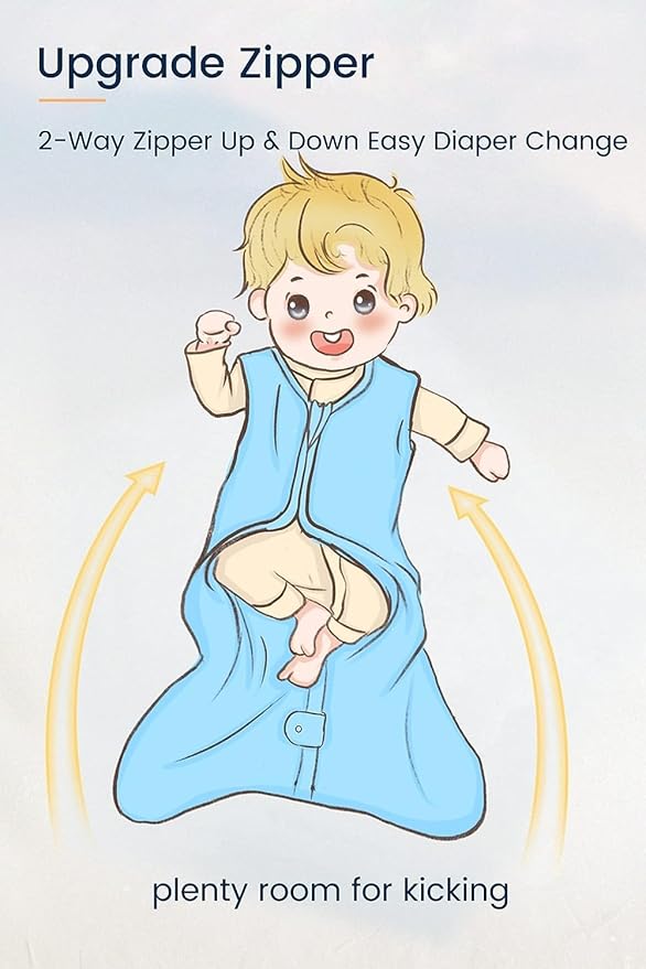 - CRAFTED WITH CARE: Up & down closures Great for middle-of-the-night diaper changes,and upgraded 2-way zipper with zipper guard at both ends prevents accidental scratching. The sleeveless design helps your baby transition from swaddling to having their arms free.